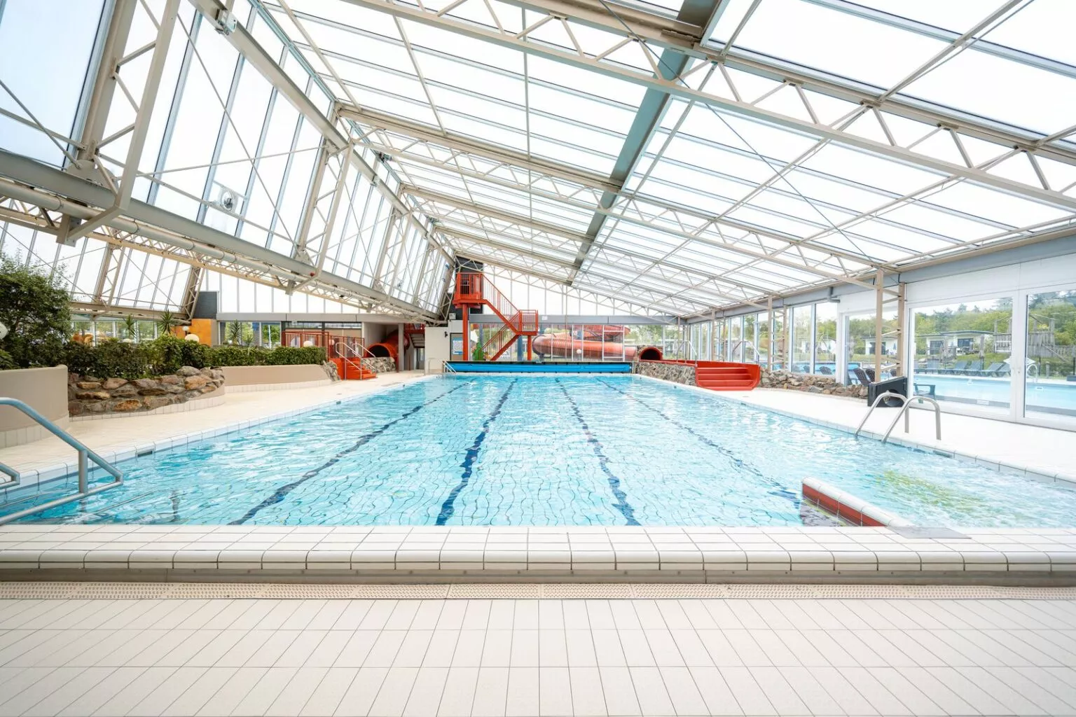 - Binnen- en buitenzwembad en watervallei