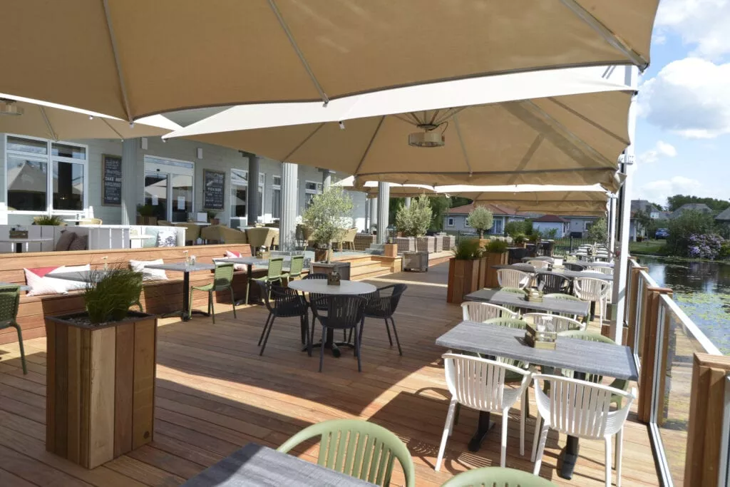 Een heerlijk ontspannen dagje, sluit u natuurlijk ook op een ontspannen en gezellige manier af. Het gezellige parkrestaurant ‘Duinhoek’ is hiervoor de perfecte plek! Een gezellig diner of Spaanse tapas. Heerlijk! Maar ook voor een kop koffie, bent u welkom. Buiten is er een gezellig terras met uitzicht op een vijver, welke het jaarrond geopend is. Liever eten in uw luxe villa, maak dan gebruik van de Take-out and Delivery. U verblijft in luxe villa’s, waarvan er enkele beschikken over rietgedekte daken.