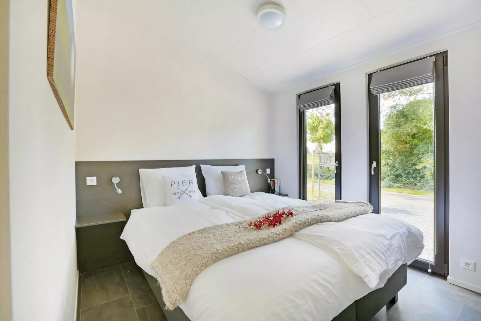 U verblijft in luxe en trendy bungalows, die van alle gemakken zijn voorzien, zoals airconditioning, comfortabele boxspringbedden en modern terrasmeubilair. De bungalow beschikt ook over een volledig uitgeruste keuken en een luxe badkamer. Kiest u voor een bungalow in het groen of heeft u liever uitzicht over het water? Geef uw voorkeur aan. Door de grote glazen pui ervaart u een aangenaam binnen-buitengevoel. Een heerlijk plekje om van te genieten is ook het terras. Uw vakantie kan beginnen!